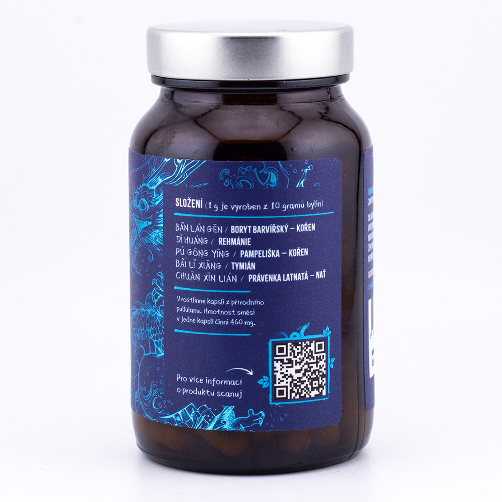 • Hlavná bylina Chuan xin lian je v TČM známa schopnosťou ochladzovať horúčavu z krvi (RE XUE) a harmonizovať telesné funkcie